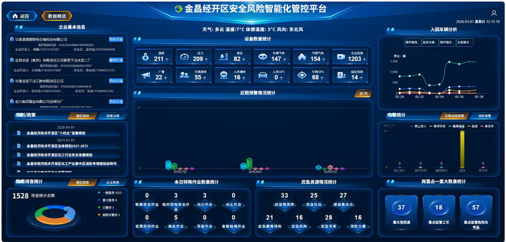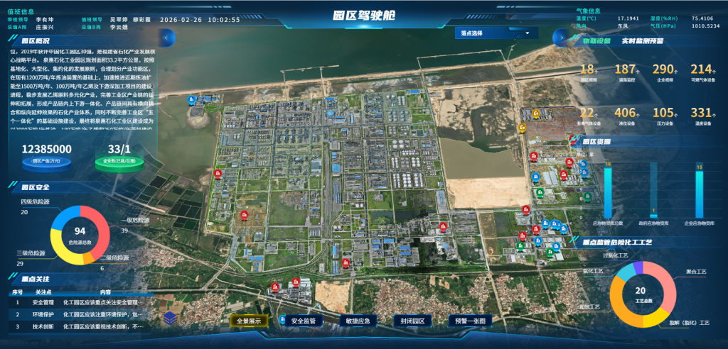 ]]>智慧化建設(shè)方面,園區(qū)通過構(gòu)建涵蓋安全基礎(chǔ)管理、重大危險(xiǎn)源監(jiān)控、雙重預(yù)防機(jī)制、氣體泄露監(jiān)測及敏捷應(yīng)急等功能的綜合管控平臺,并配套建設(shè)園區(qū)駕駛艙、企業(yè)端系統(tǒng)及完善的數(shù)據(jù)治理體系,實(shí)現(xiàn)了管理集約化與服務(wù)智能化,顯著提升了數(shù)據(jù)資源整合效率與信息化服務(wù)水平。