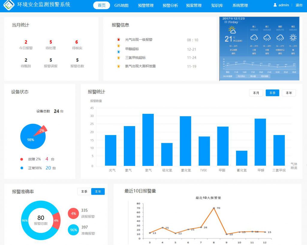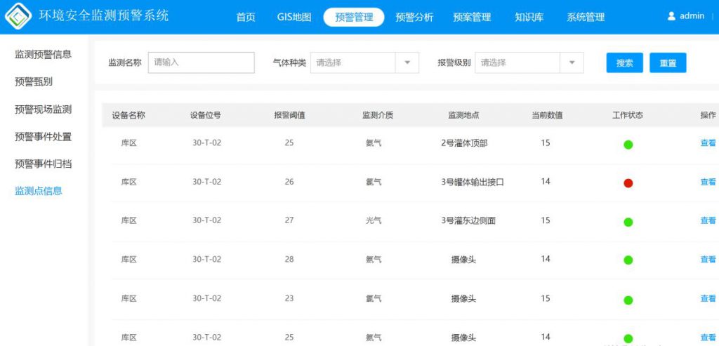 ????? 環(huán)境安全監(jiān)測(cè)預(yù)警系統(tǒng)主要功能模塊包括:監(jiān)測(cè)點(diǎn)管理、監(jiān)測(cè)數(shù)據(jù)信息、預(yù)警甄別、預(yù)警現(xiàn)場(chǎng)監(jiān)測(cè)、預(yù)警事件處置、預(yù)警事件歸檔、GIS地圖、預(yù)警分析、專(zhuān)項(xiàng)方案、知識(shí)庫(kù)等。