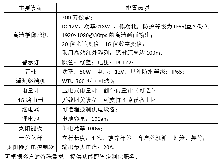 危險邊坡可視化預(yù)警監(jiān)測站集聲光電預(yù)警于一體,將雨量計(jì)、高清球機(jī)、警示燈、音柱、遙測終端機(jī)、傳輸設(shè)備、防雷器、太陽能充電控制器、太陽能電池板和蓄電池等全部設(shè)備安裝在一根由鍍鋅鋼管制成的立柱上,實(shí)時采集雨量、視頻等監(jiān)測數(shù)據(jù)并進(jìn)行智能研判,高效準(zhǔn)確的發(fā)布預(yù)警信息。