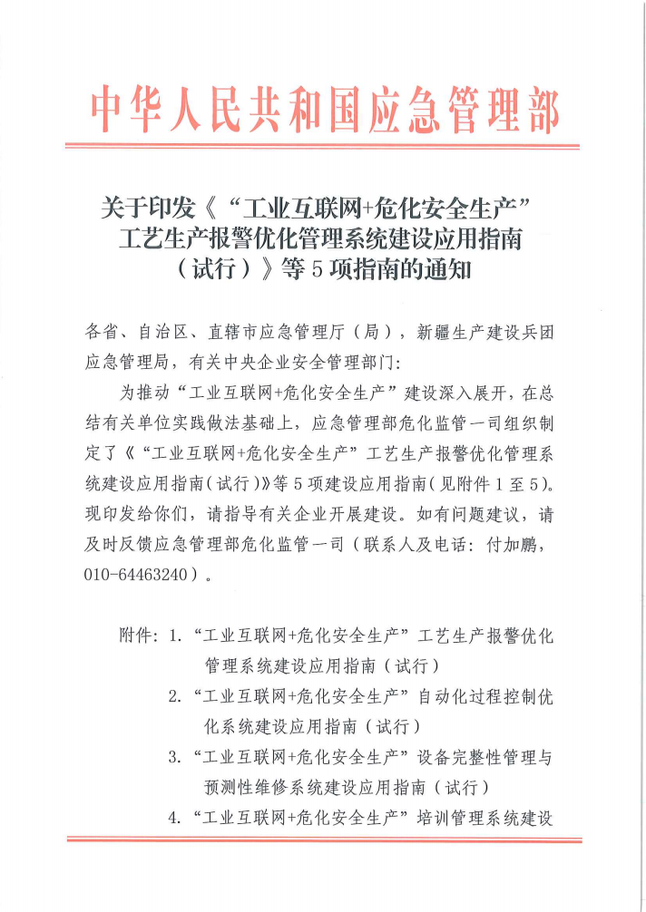 關于工藝生產報警優(yōu)化管理系統(tǒng),國家應急管理部在2023年3月發(fā)布了關于印發(fā)《“工業(yè)互聯(lián)網+?;踩a”工藝生產報警優(yōu)化管理系統(tǒng)建設應用指南(試行)》等5項指南的通知,推動“工業(yè)互聯(lián)網+?;踩a”建設深入展開。