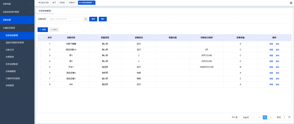 - 支持結(jié)合設(shè)備完整性系統(tǒng)實(shí)現(xiàn)高危機(jī)泵類型、機(jī)泵功率等基礎(chǔ)信息管理;